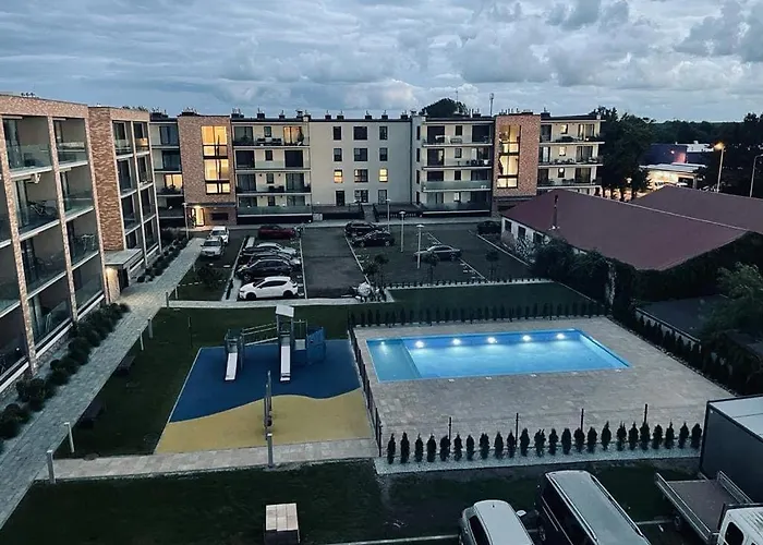Az ingyenes parkolóval, aquaparkkal és élő előadásokkal is rendelkező Caloroczny Apartament Perlowa Przystan apartman mindössze 5 perc autóútra fekszik a Kołobrzegi világítótorony területétől. Ez az 1 hálószobás apartman teljesen felszerelt konyhával, 25 perc sétára található Kołobrzeg városközpontjától.